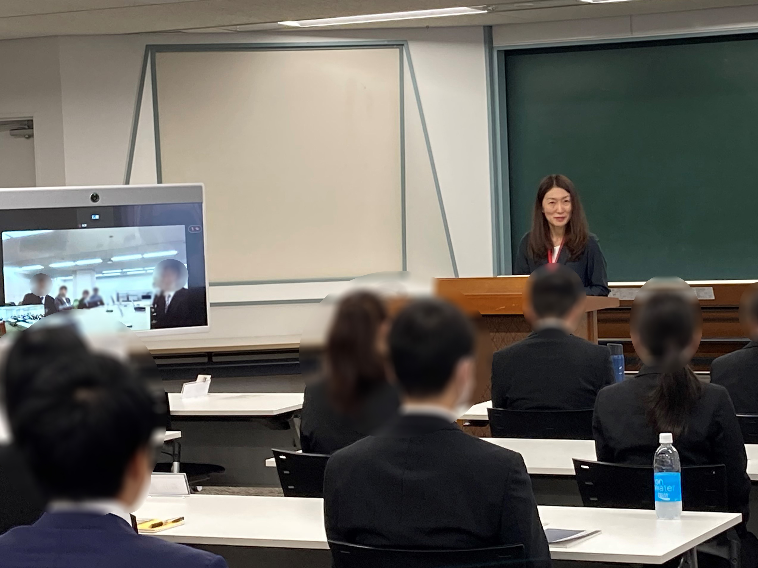 | 2025年3月3日 | 志村学園で開催された、卒業・就職を目前に控えた3年生を対象とした「フレッシュマンズ講座」に、新宿オフィスサポートグループの森が講師として登壇し、仕事に対する思いやプライベートの過ごし方、将来の目標などをお話しました。在校生は熱心に耳を傾け、仕事のやりがい、給料の使い方、貯蓄の仕方など様々な質疑応答が行われました。 | ||||